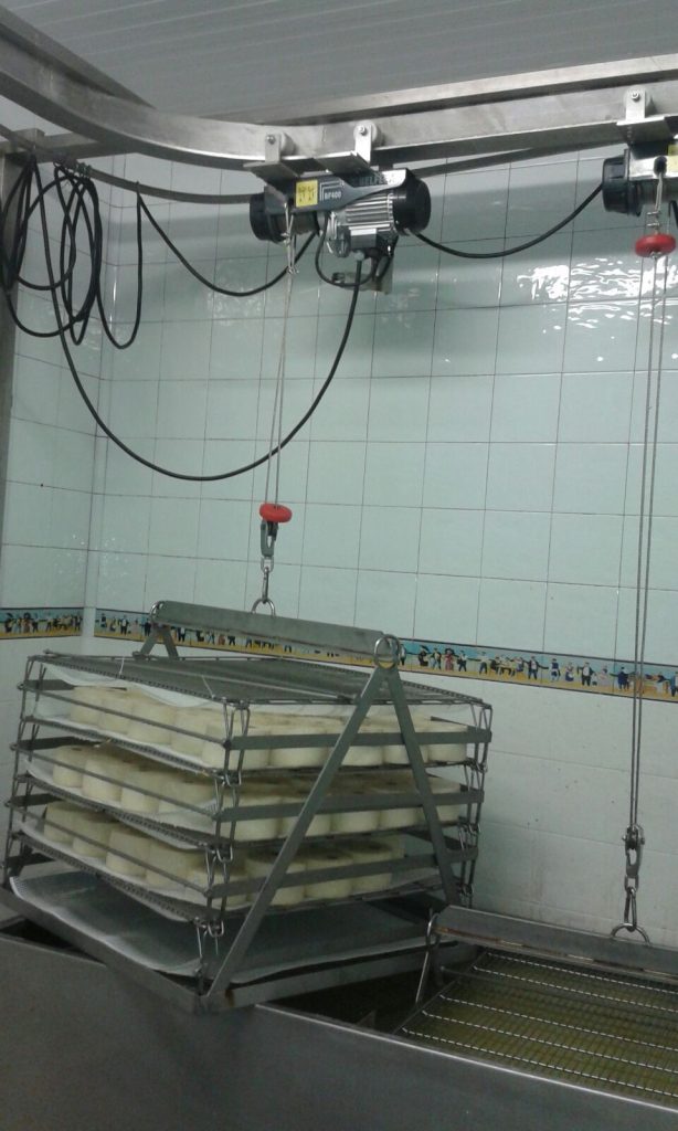 A este tipo de depósitos se le puede incorporar un polipasto para facilitar la introducción y posterior retirada de las parrillas con los quesos. Este polipasto puede estar gobernado de forma manual, o programada y automatizado.